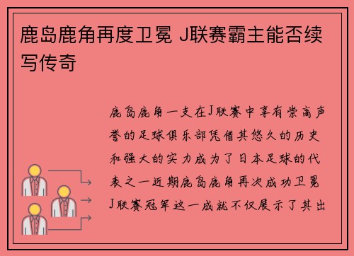 文章摘要:近年来,密尔沃基雄鹿队在扬尼斯·阿德托昆博的带领下,已经成为NBA的强队之一,并在2021年成功夺得总冠军。随着新赛季的到来,雄鹿队为了冲击卫冕目标,开始进行战术调整,期望能够更有效地面对其他球队的挑战。本篇文章将从多个角度分析雄鹿调整战术的背景、调整的具体内容,以及这些调整是否能够帮助他...