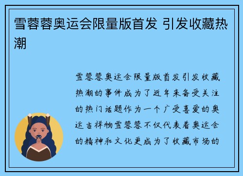 韩城奥运会作为近年来韩国体育界的重要盛事,凭借其高水平的组织与赛事呈现,不仅成功地吸引了全球体育界的目光,更为韩国体育文化的发展注入了强劲的动力。随着奥运会影响力的持续发酵,韩国的体育产业和文化生态发生了深刻的变革。从全民健身到体育产业发展,从国际交流合作到文化软实力的提升,韩城奥运会成为了韩国体育...